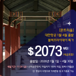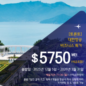 [대한항공 토론토–인천 항공편 편명(Flight Number) 변경 ] 대한항공의 토론토-인천 항공편 편명(Flight number) 이 2025 10/26~ 2026년 3/28기간동안 아래와 같이 변경되오니 혼란 없으시기 바랍니다. 토론토 ⇒ 인천 KE 074 → KE 078 인천 ⇒ 토론토 KE 073 →