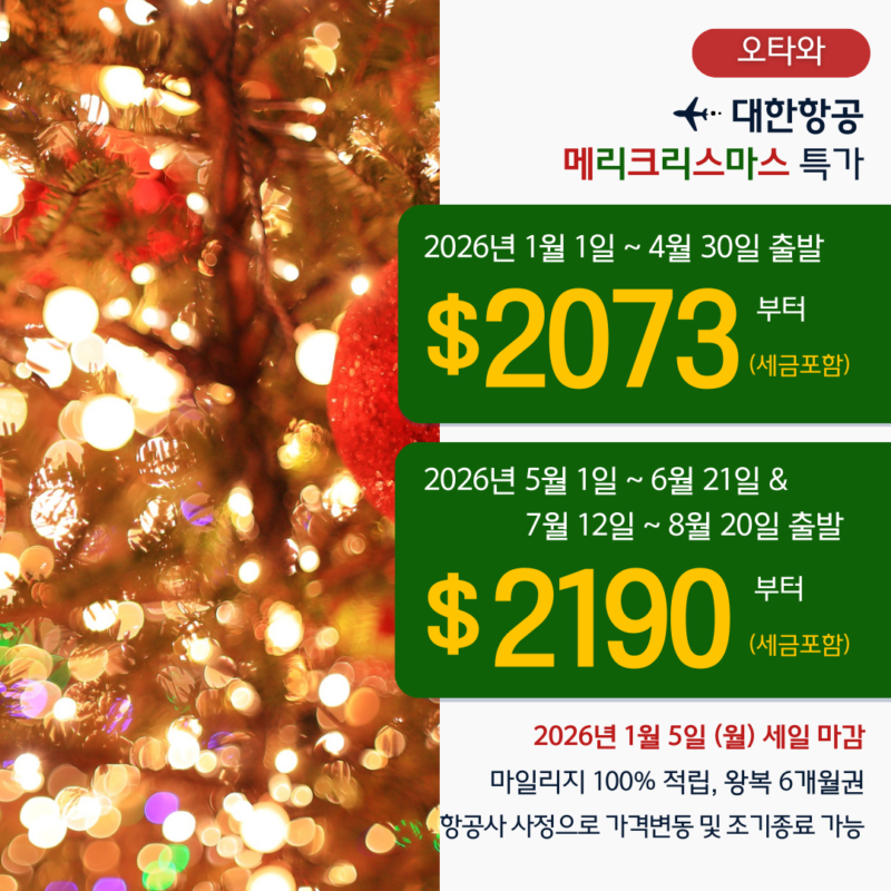 [오타와 ]대한항공 메리크리스마스 특가