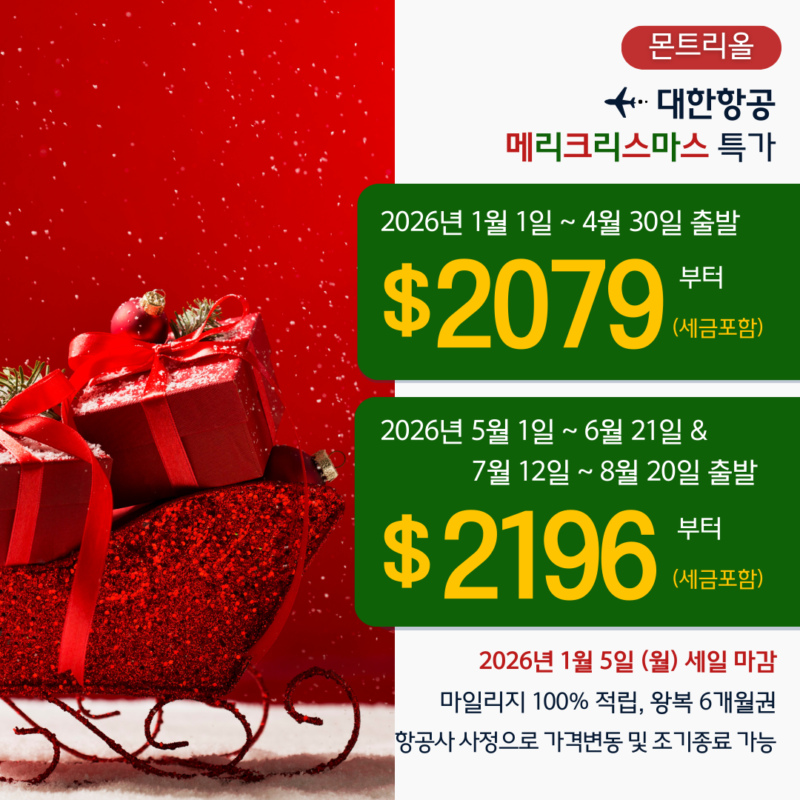 [몬트리올 ]대한항공 메리크리스마스 특가