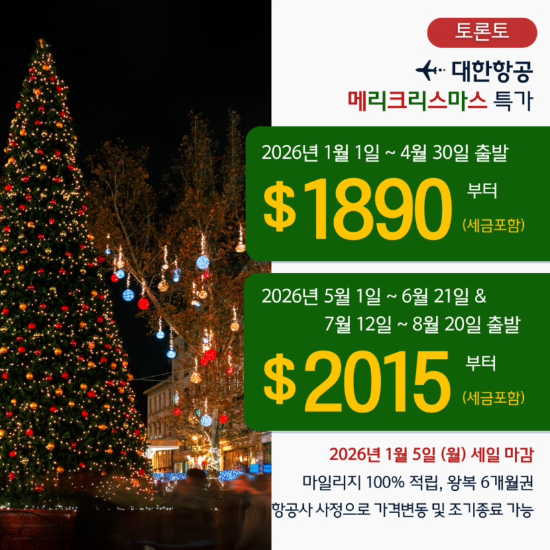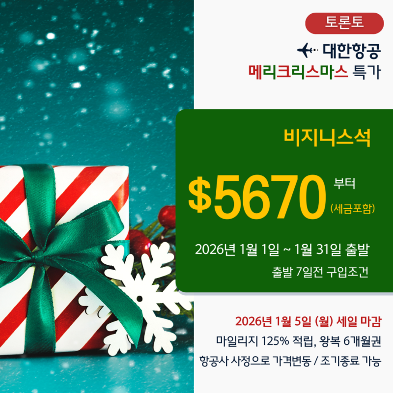 [토론토]대한항공 메리크리스마스 특가