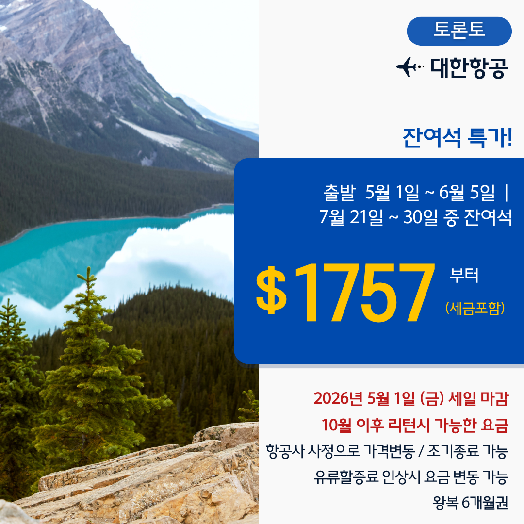 [토론토] 대한항공 준성수기특가