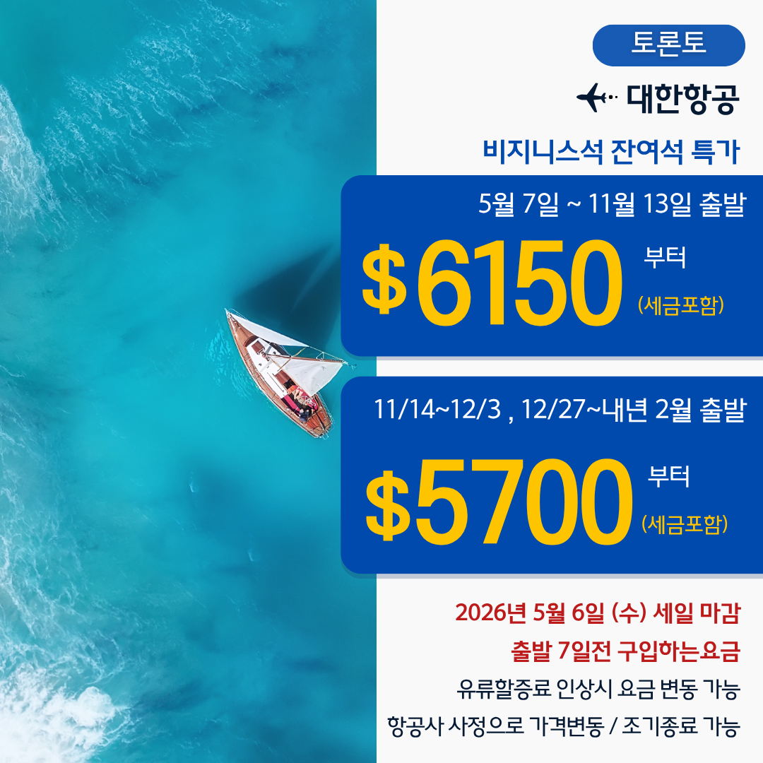 [토론토] 대한항공 비지니스석 특가