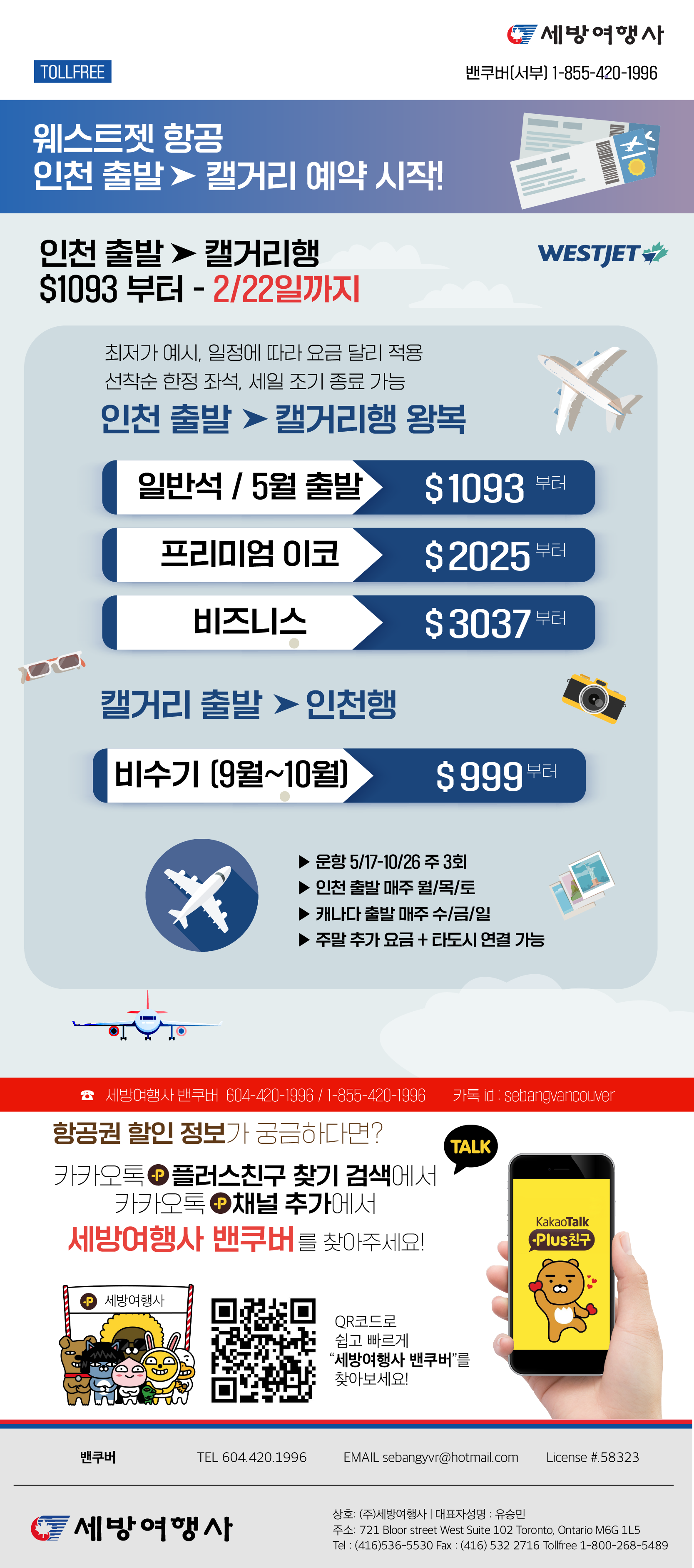 [세방여행레터] 서두르세요!! 온라인 보다 저렴한 에어캐나다 세일은 오늘(9/18 수) 까지2024/09/182024-09-18 19:19:12