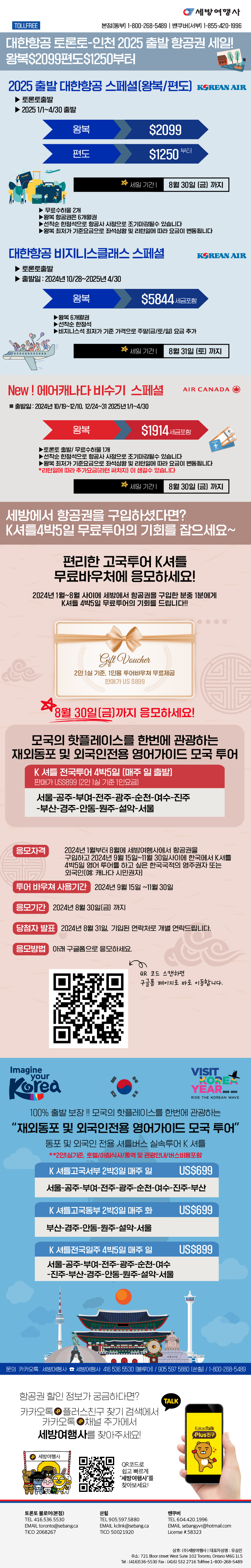 [동부뉴스레터] 여행사만 있는 항공권스페셜, 대한항공 $1807 에어캐나다 $1607 부터 ! 세일은 8월말까지2025/08/272025-08-27 17:12:22