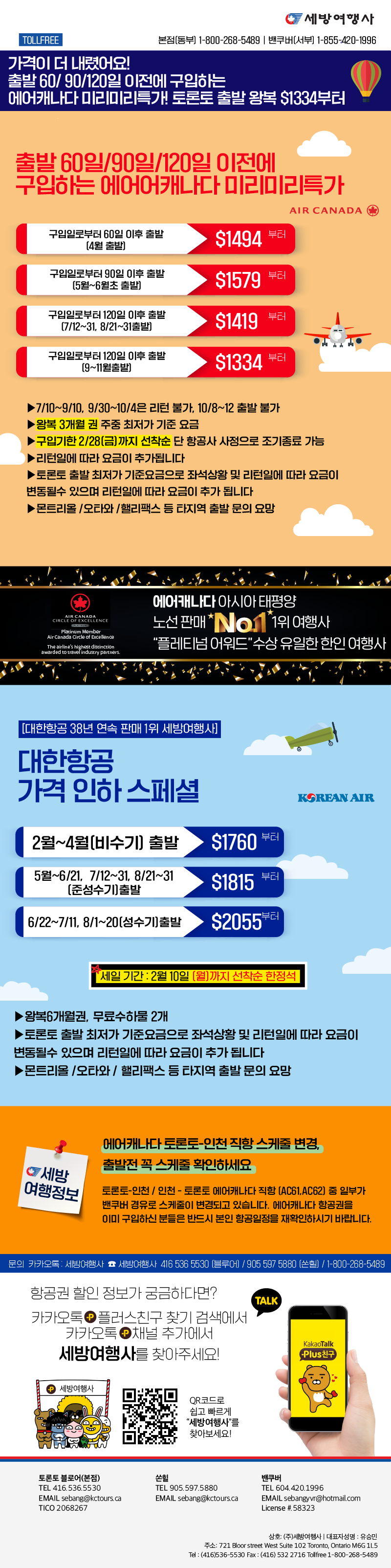 [동부뉴스레터] 에어캐나다 시즌파괴! 출발 60/ 90/120일 전에 구입하는 미리미리특가, 토론토출발왕복 $1334부터2025/02/122025-02-12 18:08:21