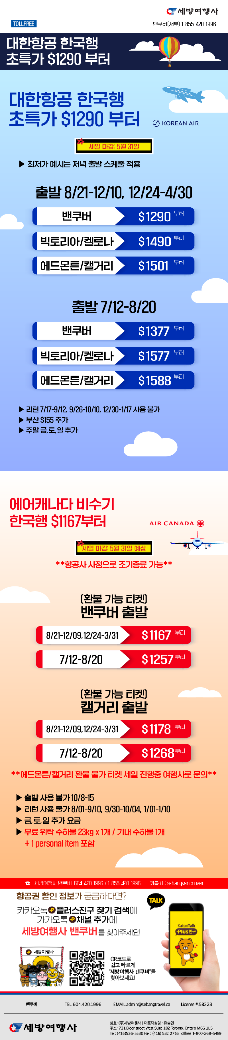 [동부뉴스레터] 여행사만 있는 항공권스페셜, 대한항공 $1807 에어캐나다 $1607 부터 ! 세일은 8월말까지2025/08/272025-08-27 17:12:22