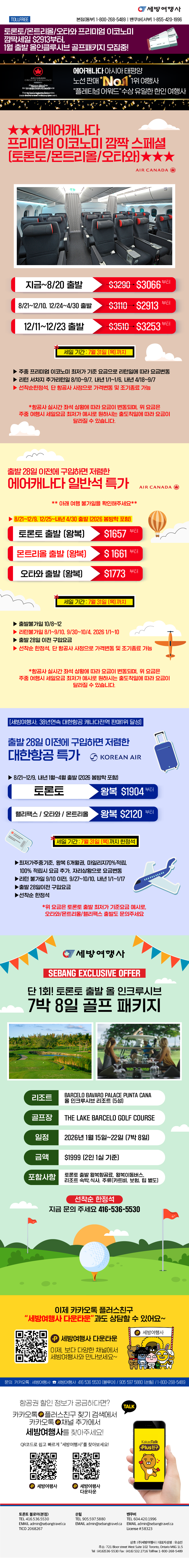 [동부뉴스레터] 여행사만 있는 항공권스페셜, 대한항공 $1807 에어캐나다 $1607 부터 ! 세일은 8월말까지2025/08/272025-08-27 17:12:22