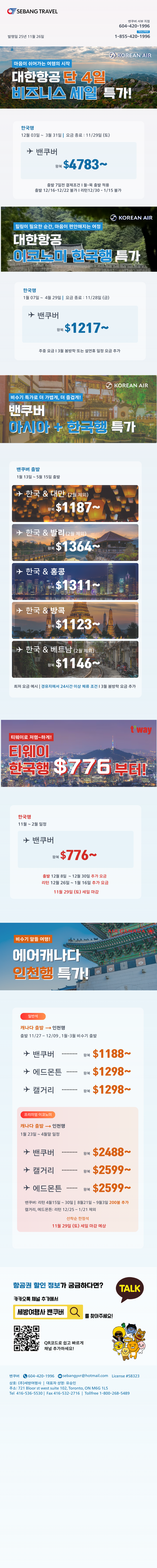 [서부뉴스레터] 한국행 특가 밴쿠버 $1175부터~ 에드먼튼/캘거리 출발 $904부터~2025/12/192025-12-19 21:11:07