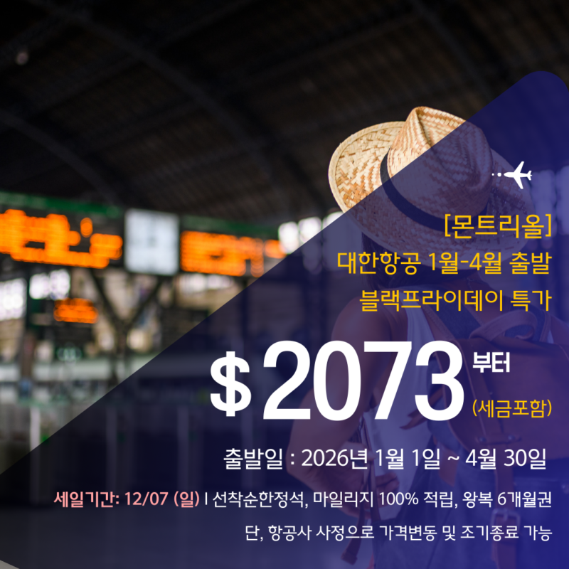 [몬트리올 ]대한항공 1월~4월 출발 블랙프라이데이 특가