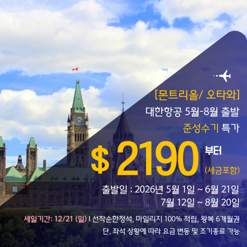 [몬트리올/오타와] 대한항공 2026 준성수기 특가