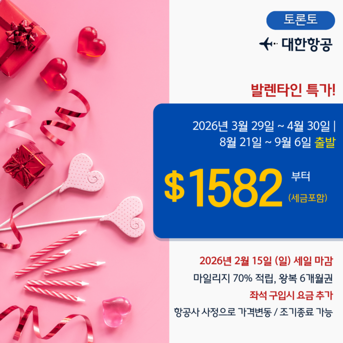 [토론토]대한항공 발렌타인 특가