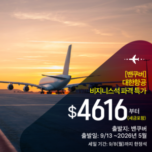 [밴쿠버] ✨대한항공 비지니스석 파격 특가✨