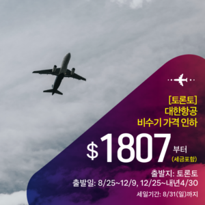 [토론토] ✨대한항공 비지니스석 가격인하✨